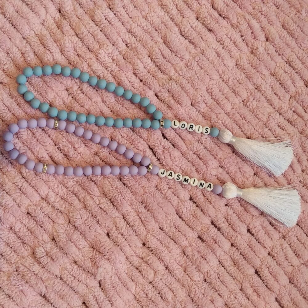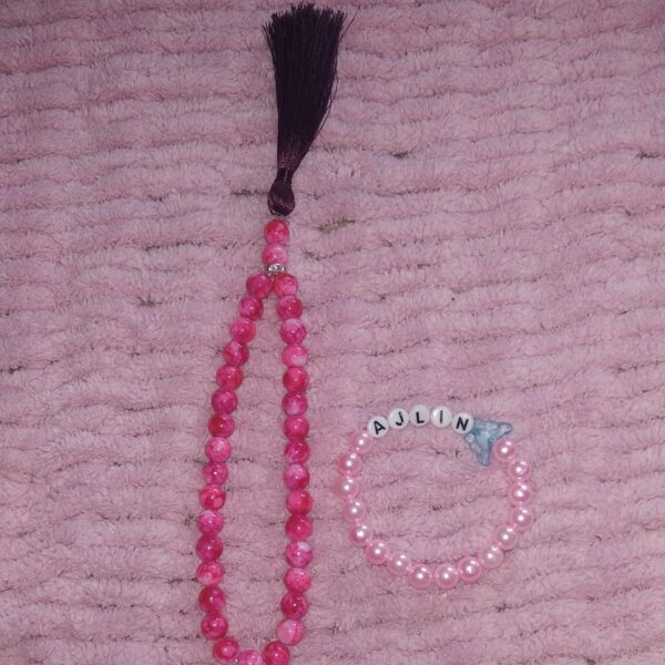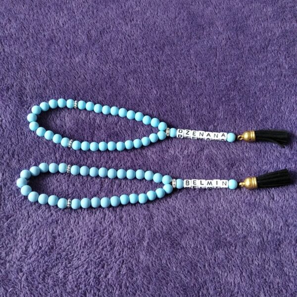 Tespih sa imenom je ručno izrađen i može se personalizirati dodavanjem imena, poruke ili kratke posvete. Dostupan je u različitim bojama i stilovima, a spaja duhovnost i jedinstvenu ličnu notu. – idealan kao poklon za dragu osobu ili za vlastitu upotrebu.